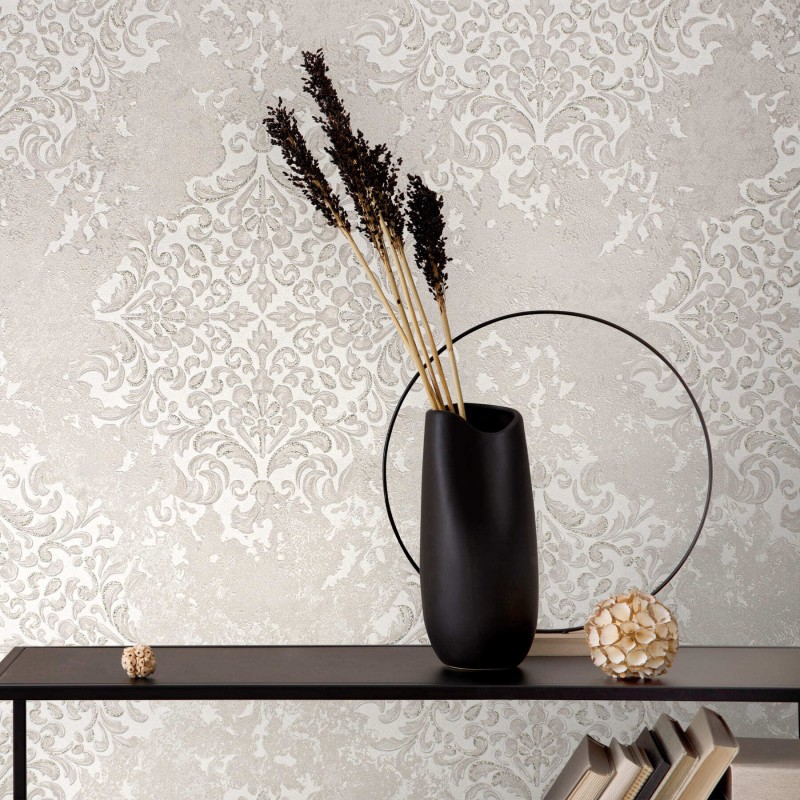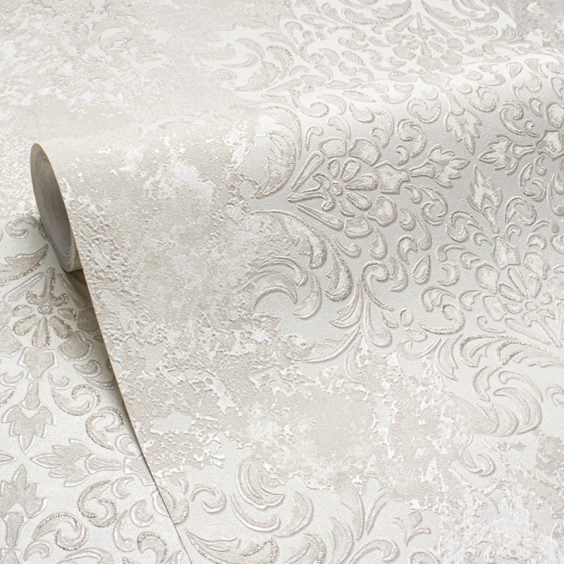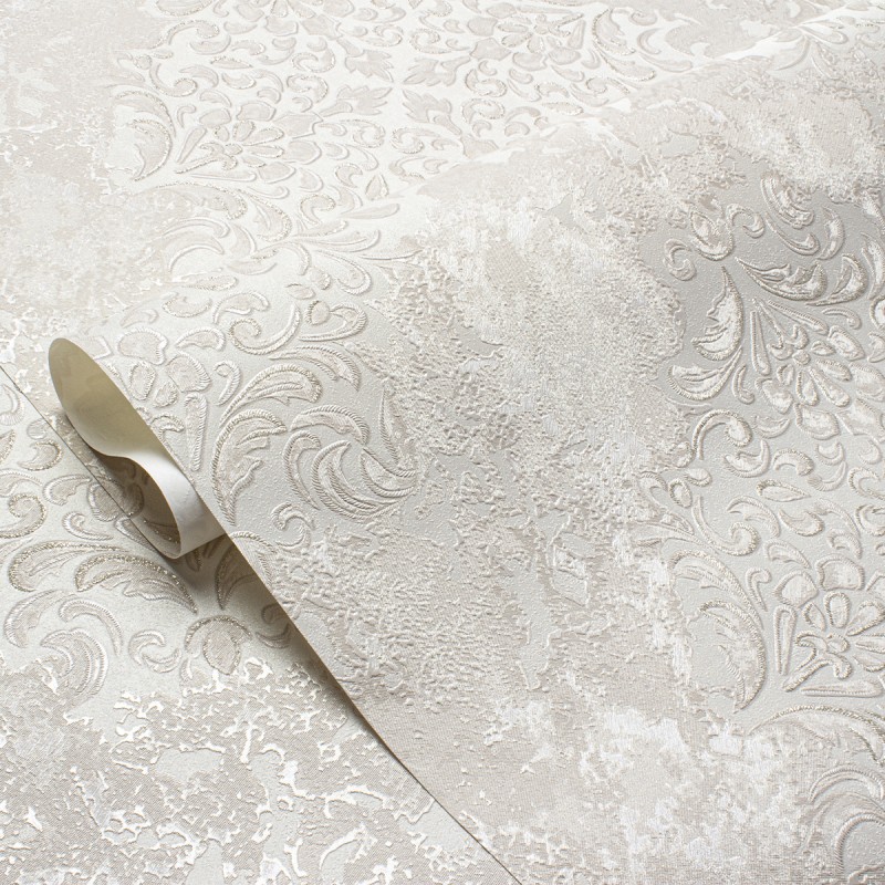На этот раз фабрика отдала предпочтение светлым тонам, необычному орнаменту-фреске тон в тон и плотному рельефному фону-компаньону, который стыкуется без подгонки.