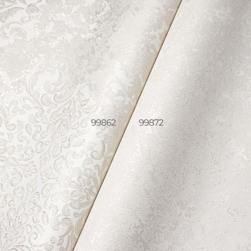 На этот раз фабрика отдала предпочтение светлым тонам, необычному орнаменту-фреске тон в тон и плотному рельефному фону-компаньону, который стыкуется без подгонки.