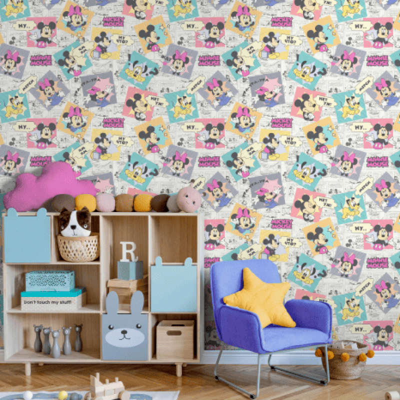 Коллекция «Комиксы» станет открытием для малышей и вызовет ностальгические воспоминания у родителей. Оптимизм, который дарят Микки и его друзья, сделает комнату ярче и создаст атмосферу счастья. А смелые родители могут разрешить детям рисовать прямо на обоях!