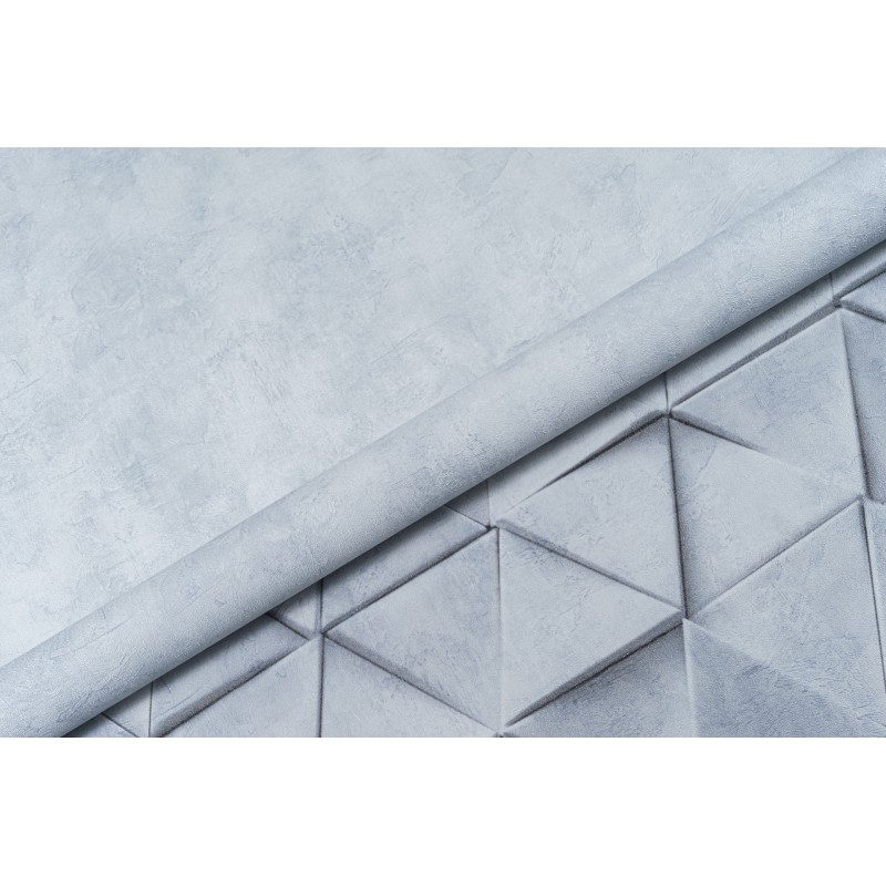Обои из коллекции «Нокс» представляют собой безупречную иллюзию объёма. Хочется протянуть руку, чтобы ощутить выступающие углы идеально выверенных треугольников. Подобный эффект достигается за счет филигранной игры света и тени, которая строится на контрасте светлого и более тёмного оттенков одной цветовой палитры. По своей текстуре обои напоминают матовую бетонную поверхность. Детально проработанная матрица узора также создает ощущение 3D объёма. В некоторых местах геометрические фигуры словно накладываются друг на друга, придавая изображению динамку и отвечая за ощущение упорядоченности в пространстве.
