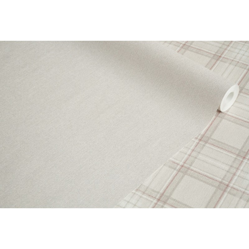 При создании коллекции не было сомнений, что достойную пару клетке составит фон с имитацией текстиля. Компаньон представлен в классической аристократической гамме: ирландский мох, ванильно-кремовый, теплый серый.