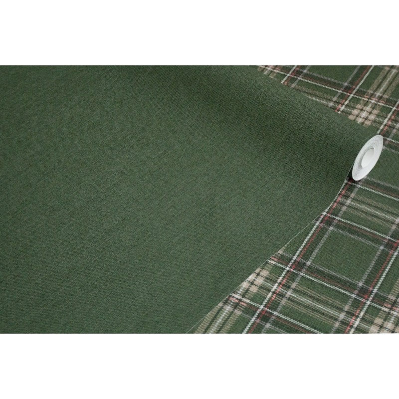 При создании коллекции не было сомнений, что достойную пару клетке составит фон с имитацией текстиля. Компаньон представлен в классической аристократической гамме: ирландский мох, ванильно-кремовый, теплый серый.